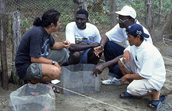 third part consisted of a workshop in Benin in order to train conservationists in Benin and neighbouring countries in the different aspects of sea turtle biology and conservation. The workshop (under scientific direction of Dr Jacques Fretey) lasted a week, and was visited by twenty-one participants from a.o. seven West African countries: Benin (Nature Tropicale, AVPN, BPL), Togo (Universite du Benin Lome Togo), Cameroon (Projet Campo), Senegal (Village des Tortues), Sierra Leone (Conservation Society of Sierra Leone), Liberia (SAMFU Foundation), Ghana (Ghana Wildlife Society), USA (Peace Corps), France (IUCN), and The Netherlands (Biotopic). Participation